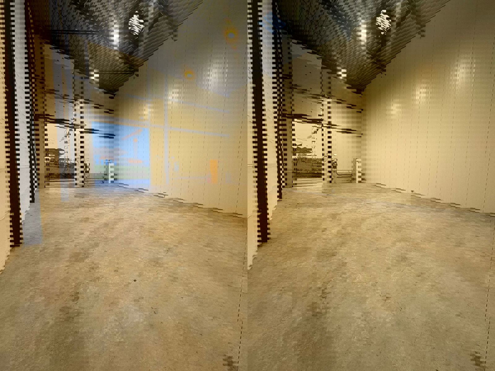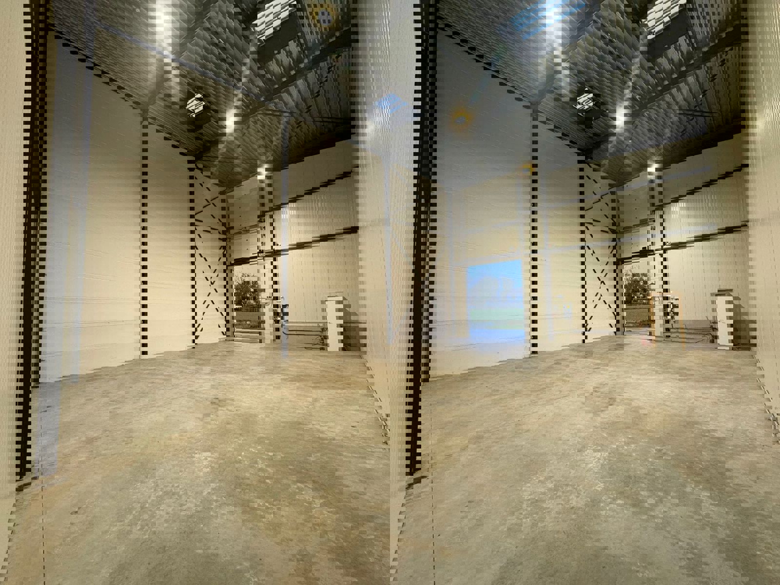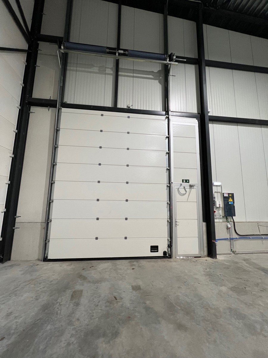 - Porte sectionnelle automatique (4,2m de haut sur 3,5m de large) avec commande à distance via application